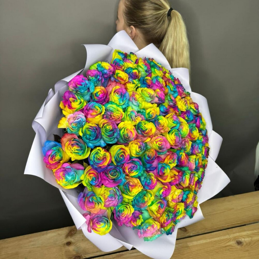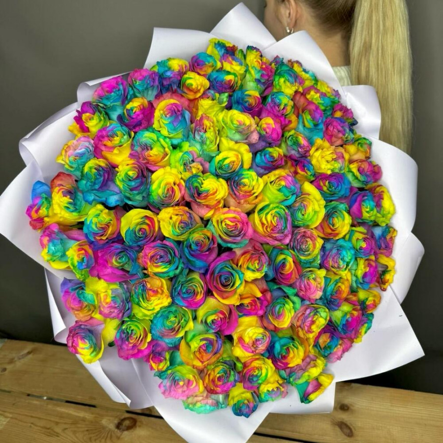 Букет из 101 радужной розы в Бологое
