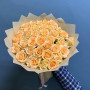 На фото букет из 35 кремовых роз. В составе: роза 35 шт, дизайнерская упаковка 2 шт, атласная лента 1 шт, . Все цветы свежие и ароматные, букет красиво оформлен и отлично подходит для подарка. Доступна доставка цветов или самовывоз.