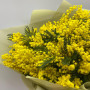 На фото большой букет из мимозы. В составе: мимоза 29 шт, дизайнерская упаковка 1 шт, атласная лента 1 шт, . Все цветы свежие и ароматные, букет красиво оформлен и отлично подходит для подарка. Доступна доставка цветов или самовывоз.